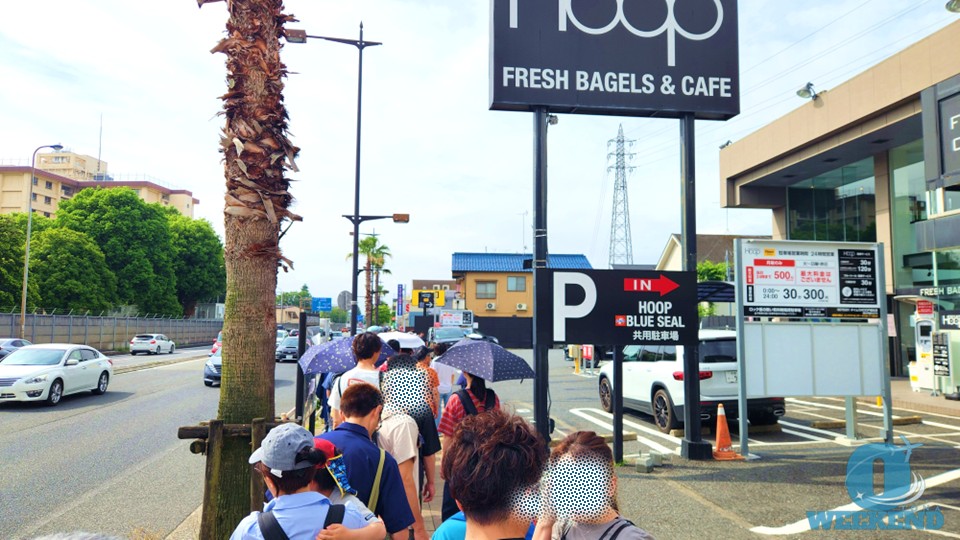 喫茶店Hoop付近で行列の最後尾に到着。ゲートまで500m徒歩6分の位置で行列の最後尾を捕まえました。この時点で前回より駅からゲートまでの距離が短く、列も少ないので、東福生駅のほうがいい感じ!