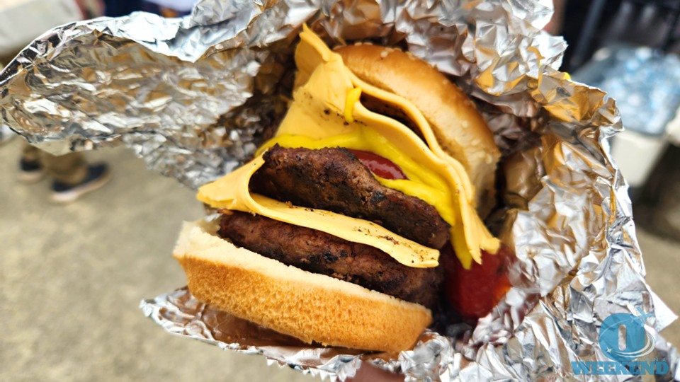 今年もやってきました、外人バーガー。去年とは違い滑走路側に出店していて迷いましたが、行列ですぐわかります。