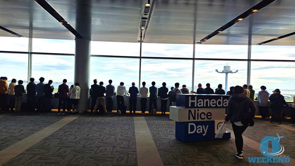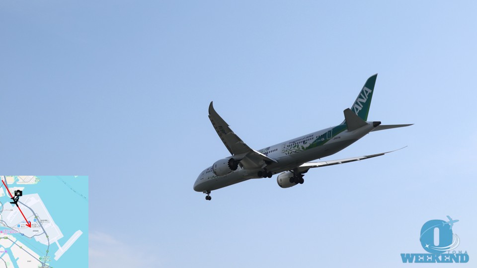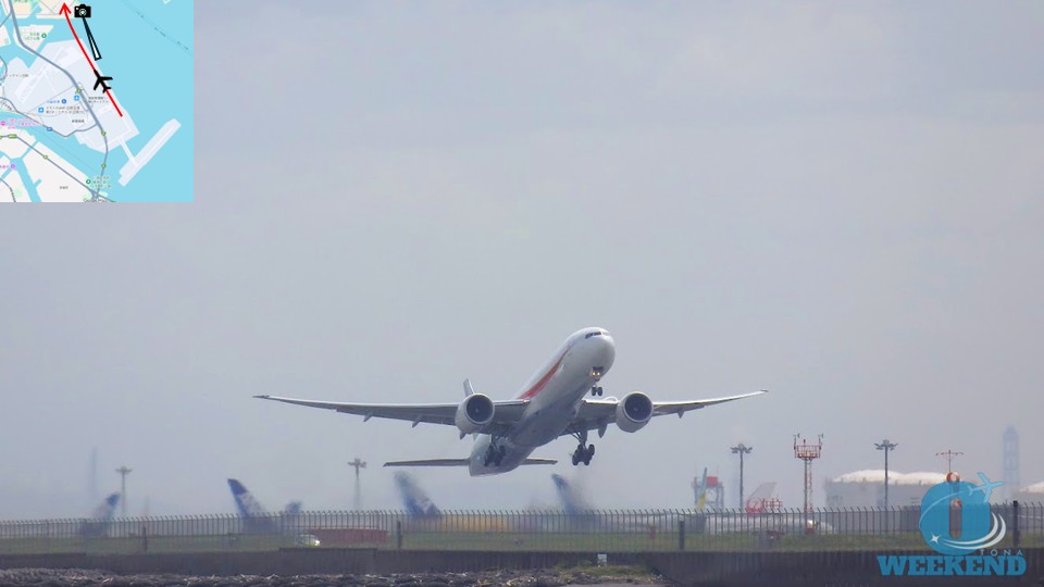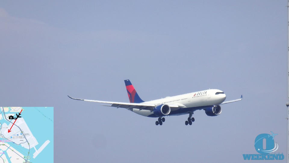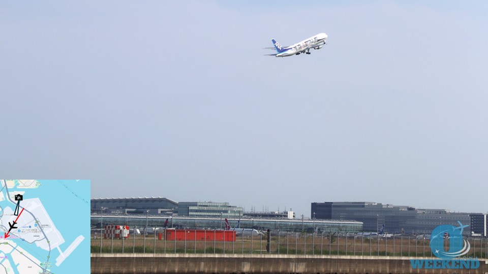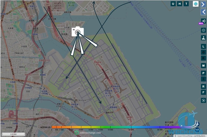 東京湾を大きく旋回してから進入するため、機体が来るタイミングを予測しやすいです。 - 離陸の場合