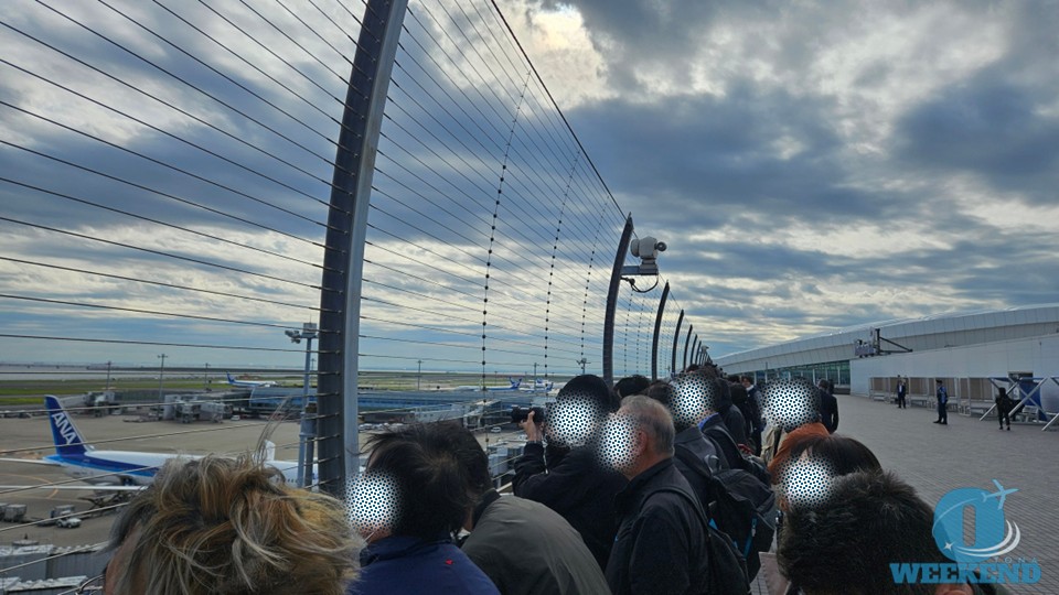 ターミナル内の窓越しからも飛行機を見ることができ、屋外デッキに出るとより視界が開けて撮影しやすくなります。