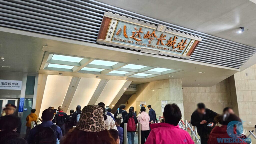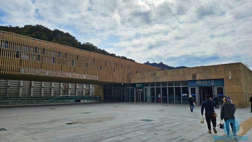 八達嶺長城駅(八达岭长城站)の入口はまた違った雰囲気で英語で駅名がかかれていました。