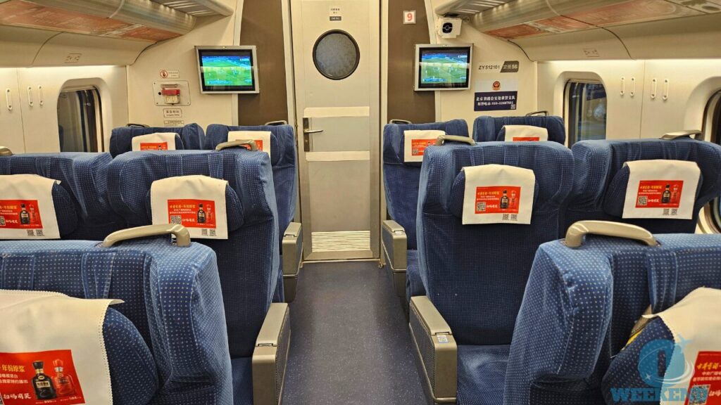 帰りは1等席。2+2列シートです。グリーン車という感じです。2等車でも快適でしたが、数百円なので、1等にも乗車してみました。