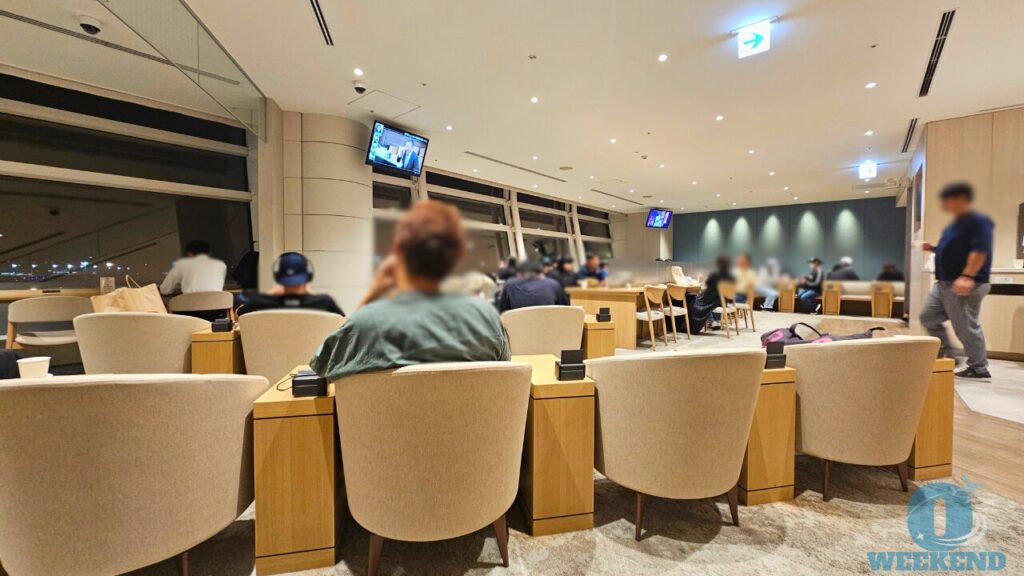 時間つぶしにエポスゴールドカードを持っていれば無料で利用できる SKY LOUNGE へ行くも、もちろん激混み。まあ深夜便だし仕方ないですね。