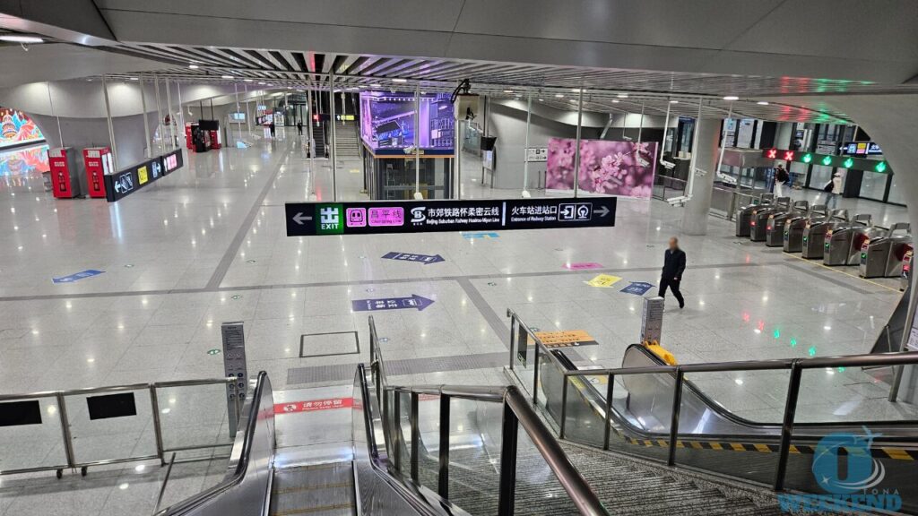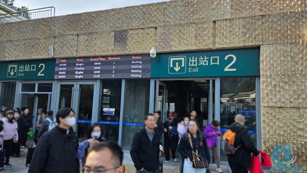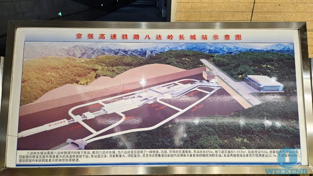 定刻で 八達嶺長城駅(八达岭长城站) に到着。かなりの地下に駅があり、山をぶち抜いた感があります。