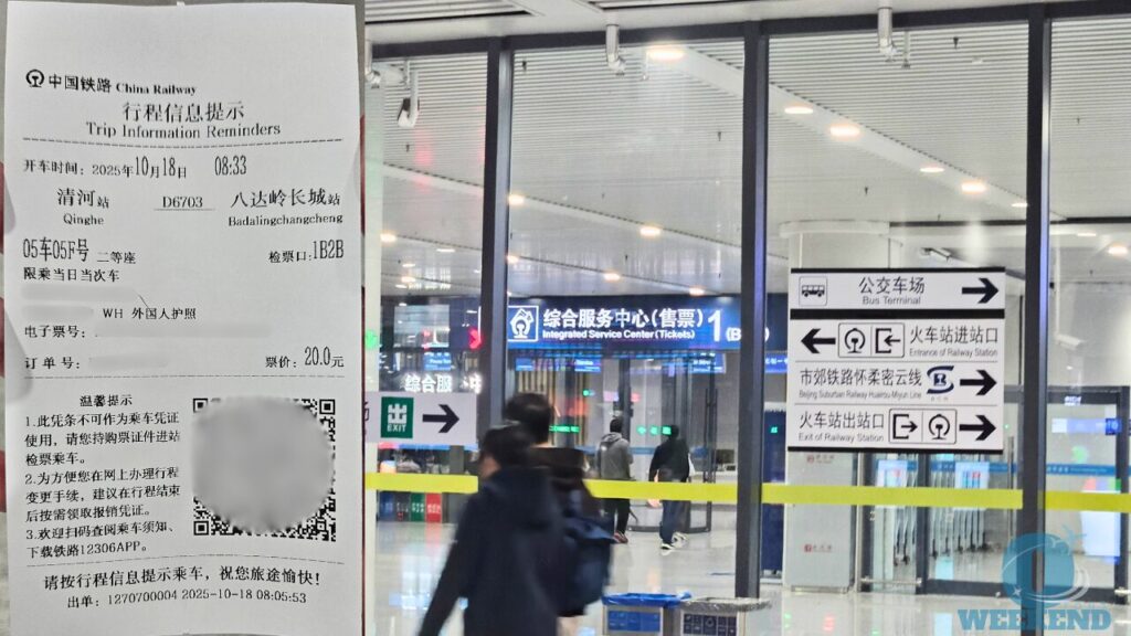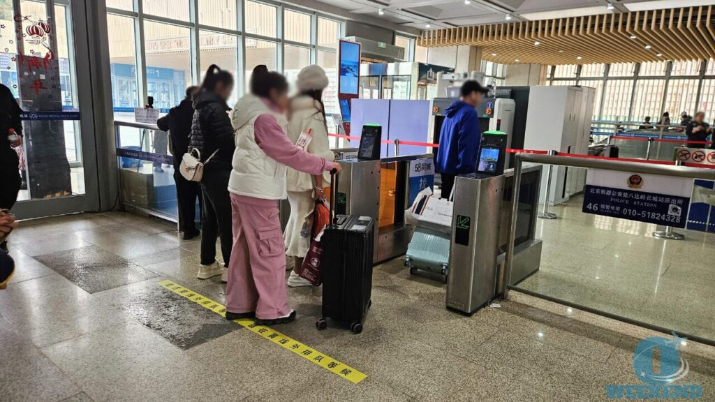 乗車する列車は八達領長城13:19発、清河13:40着のD6720です。かなり前もって来ましたが、駅の入場で荷物検査と身体検査は必須。またパスポートをスキャンできない改札のようで係員にパスポートを提示して入場しました。