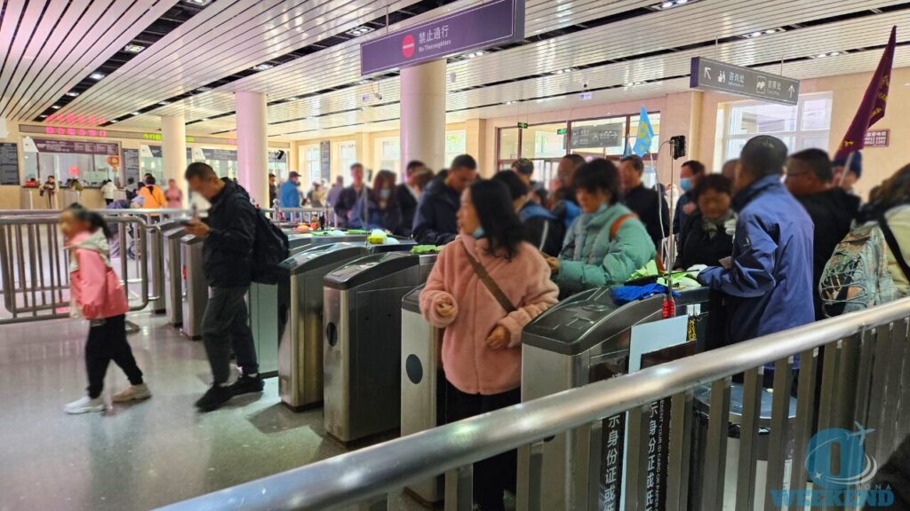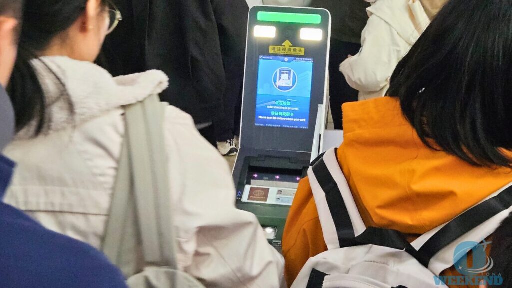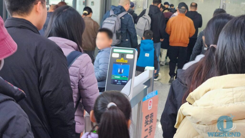 改札開始。中国人は身分証カード、外国人はパスポートスキャンで入場。紙のチケットいらないのね。