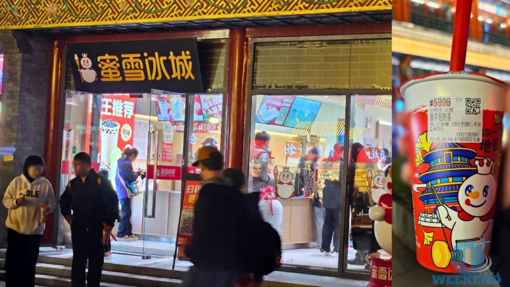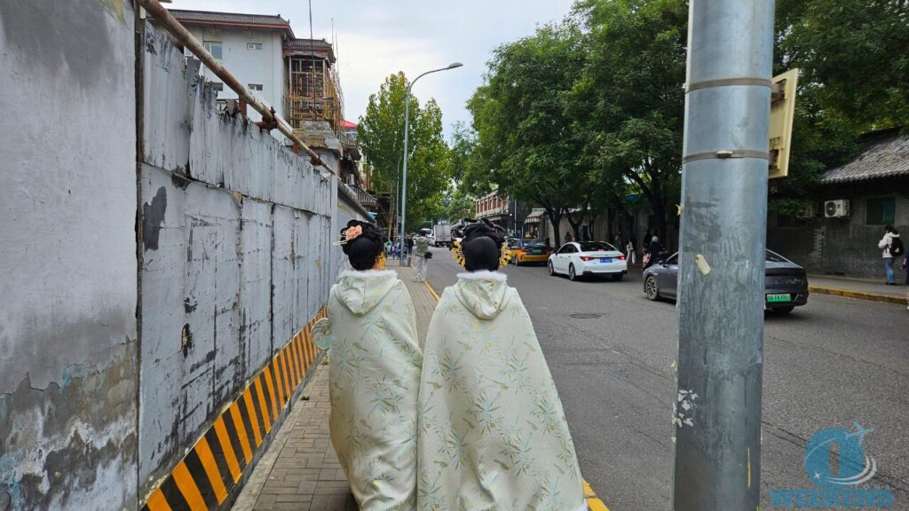 WeChatで順番の案内通知があったので四季民福に向かいます。コスプレの方が歩道をふさいでしまって追い越せませんのでゆっくり進みます。