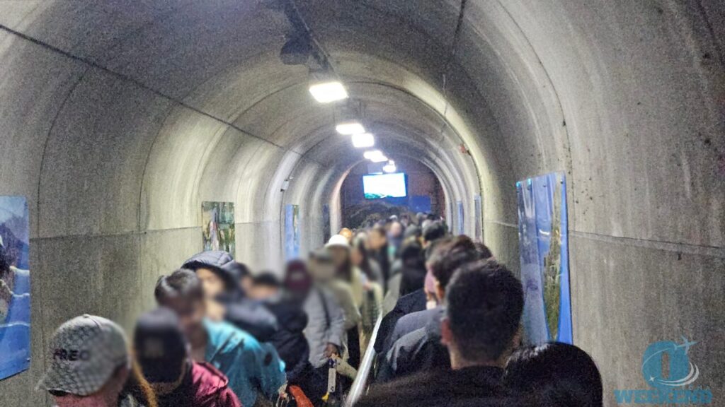 ロープウェイを降りてからも行列をさばくための通路を10分くらい歩きます。