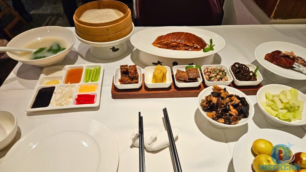 となりの席の人も北京ダックハーフを注文していたようで、北京ダックの丸焼きからの解体は一緒に鑑賞。きれいに解体していきます。