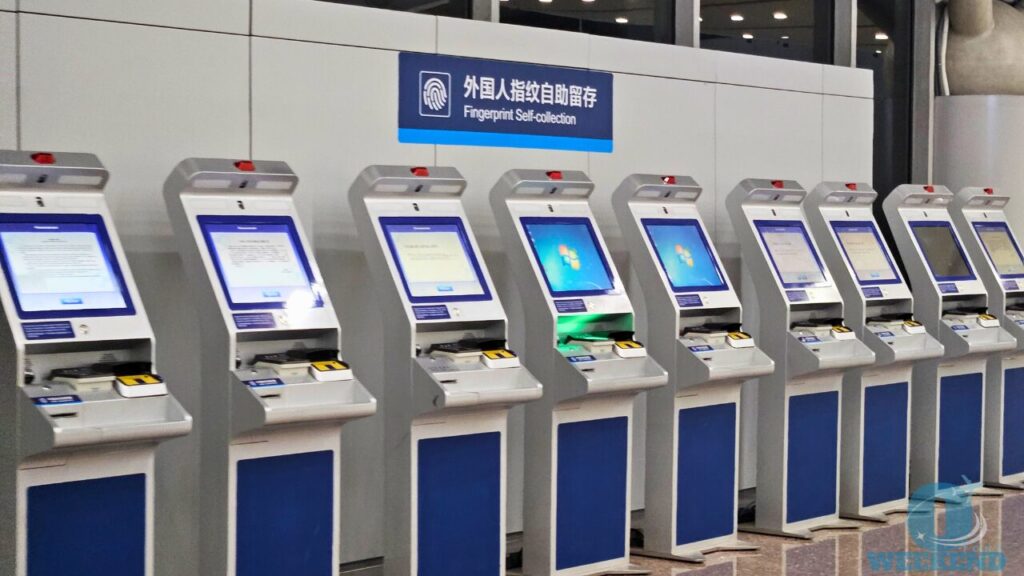 飛行機を降りて少し歩くと、外国人向けの指紋採取機があります。パスポートを読み込むと自動で日本語に切り替わるので、そのまま画面の指示に従って進めるだけでOK。