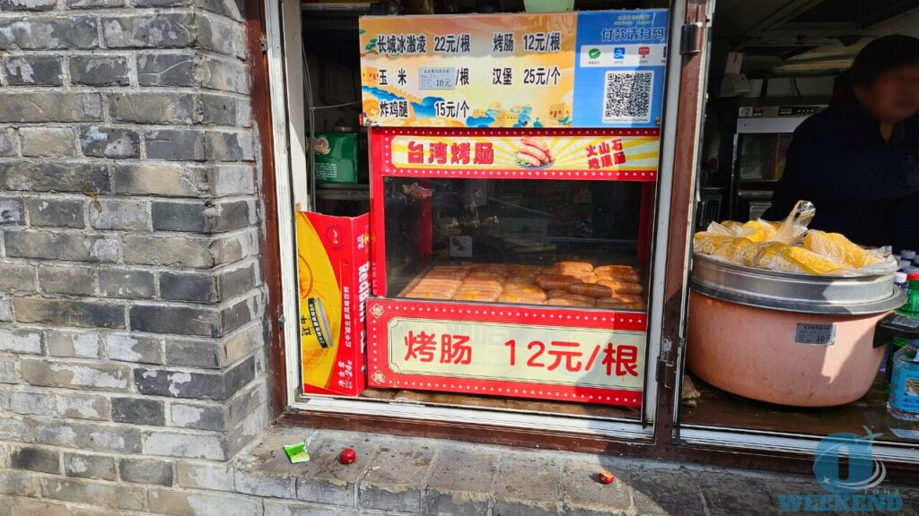 小腹がすいた、というより機内食以来食事をしていないのでちょっと購入してみます。電波はあるようで、アリペイは起動しました。お店にあるQRコードをスキャンして無事購入。台湾ソーセージですが、串に刺さっていて何人も食べているのでそそられました。12元(240円)と山の上なので割高なのは仕方ない。中国人はトウモロコシをかなりの人が食べているので、そういう文化なのですね。