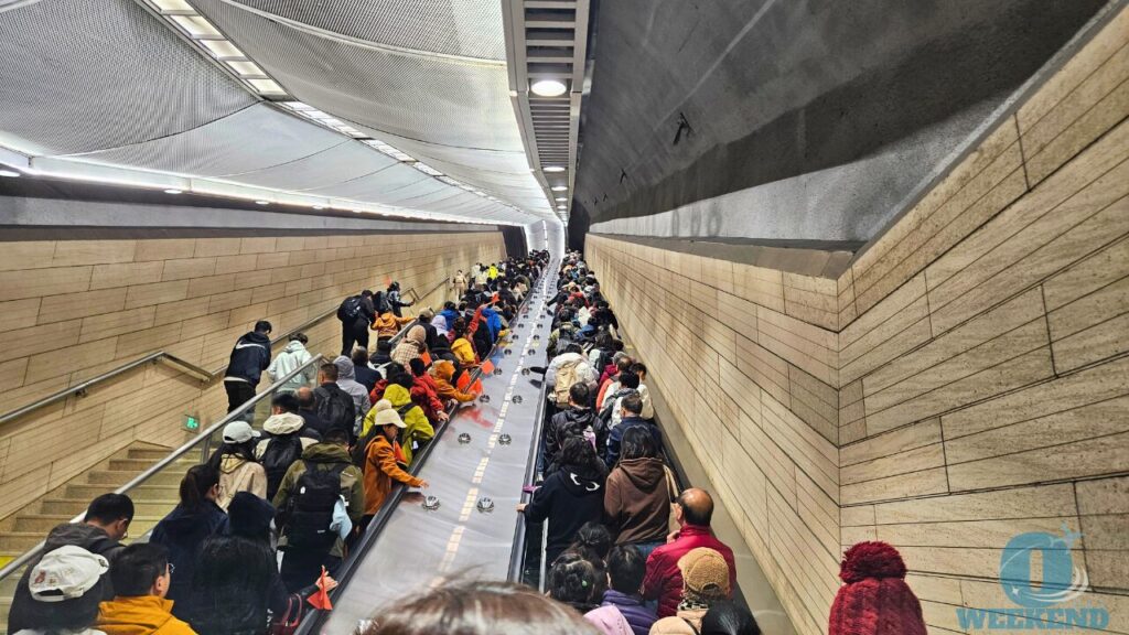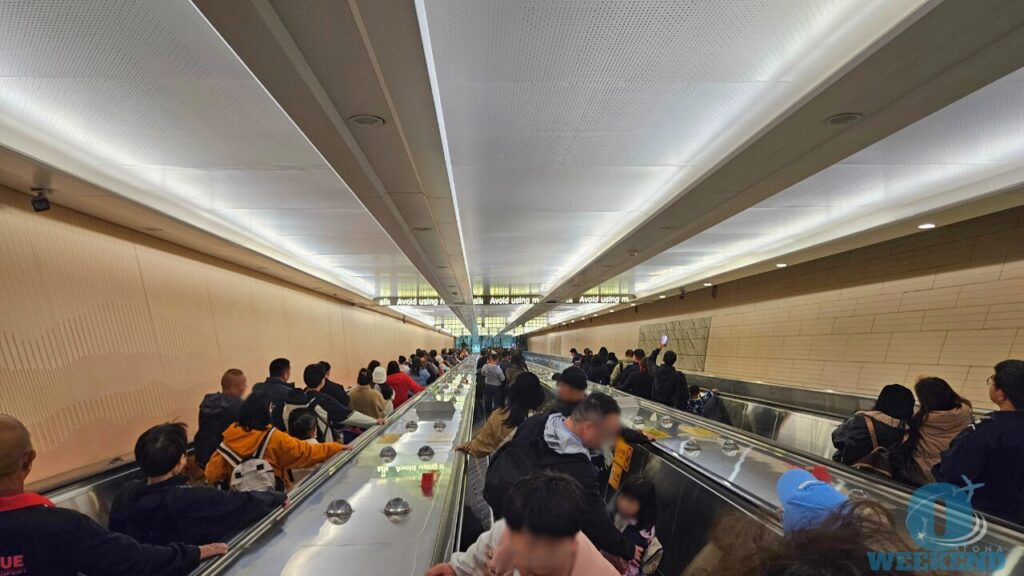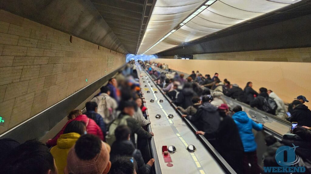 さらに長いエスカレーターで上がっていきます。多すぎるのか、エスカレーターの乗車をコントロールしていました。