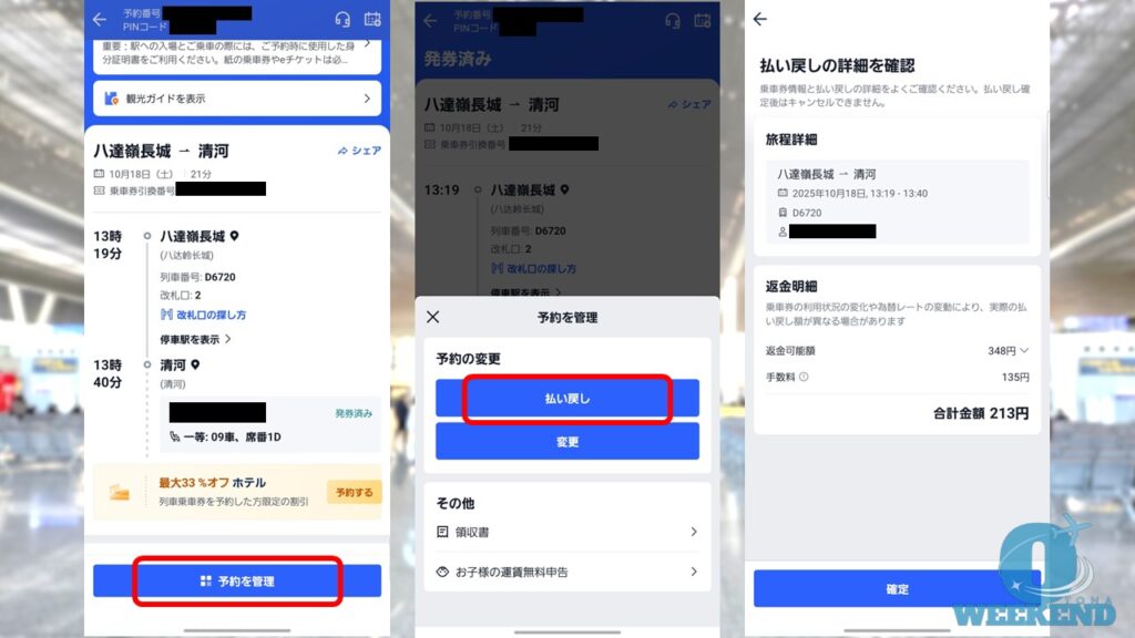 あわててキャンセルしたのでスクショ取り損ねましたが、教訓として、帰り便でキャンセルの手順を確認しました。「予約を管理」の中に「払い戻し」ができるようになっていました。手数料がいくらかかかります。