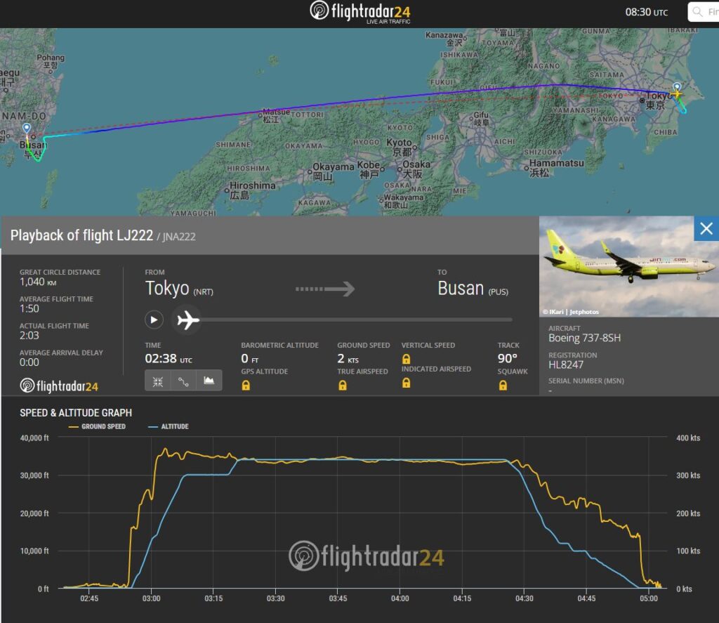 成田→釜山 ジンエアーLJ222便の基本情報