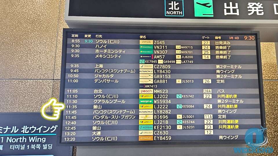 出発の約2時間前、9:30に成田空港第1ターミナル北ウイングに到着しました。